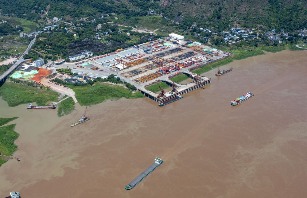 这是7月30日在重庆市涪陵区拍摄的长江边的黄旗港码头(无人机照片)。