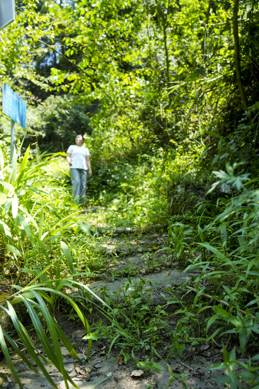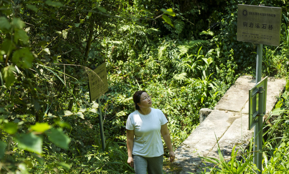 7月30日,重庆涪陵区百胜镇工作人员郭凤英对大山深处的古道遗址进行巡查。