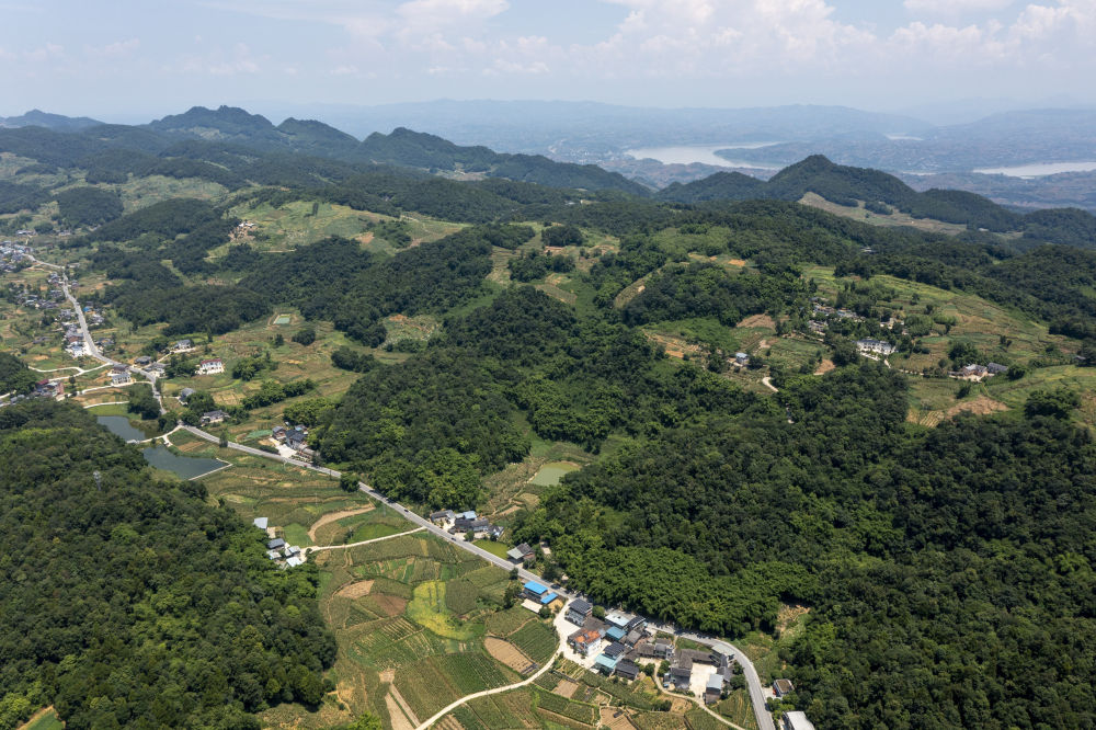 这是7月30日拍摄的重庆市涪陵区百胜镇乡村道路(无人机照片)。