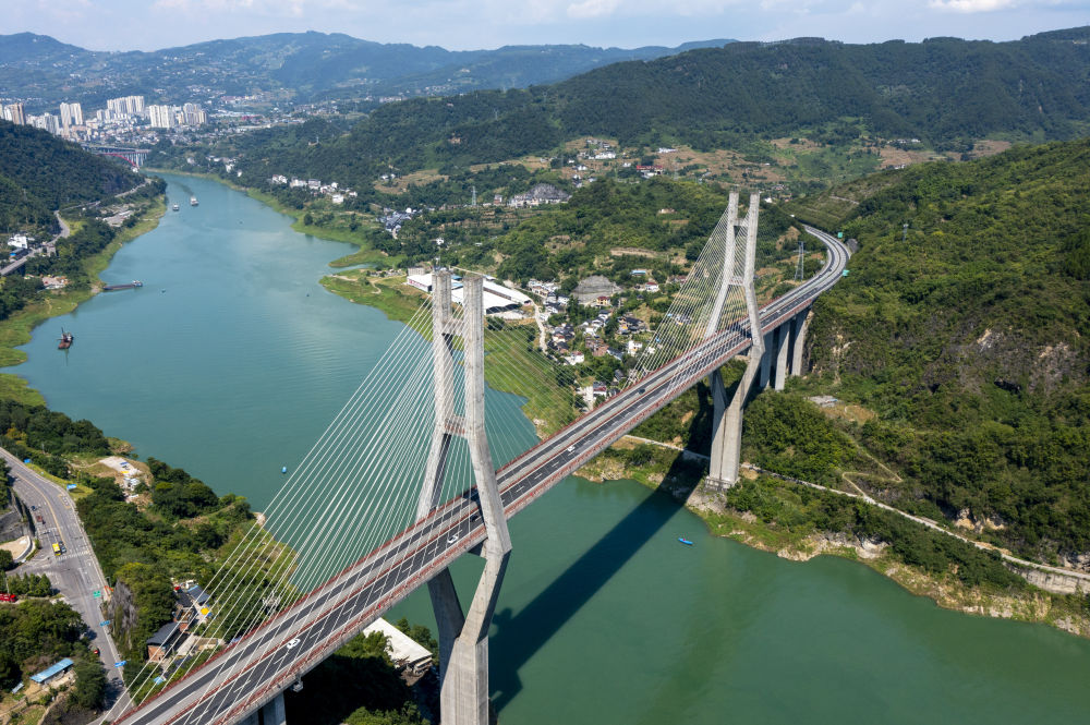 这是7月30日拍摄的重庆市涪陵区石渝高速荔枝乌江大桥(无人机照片)。