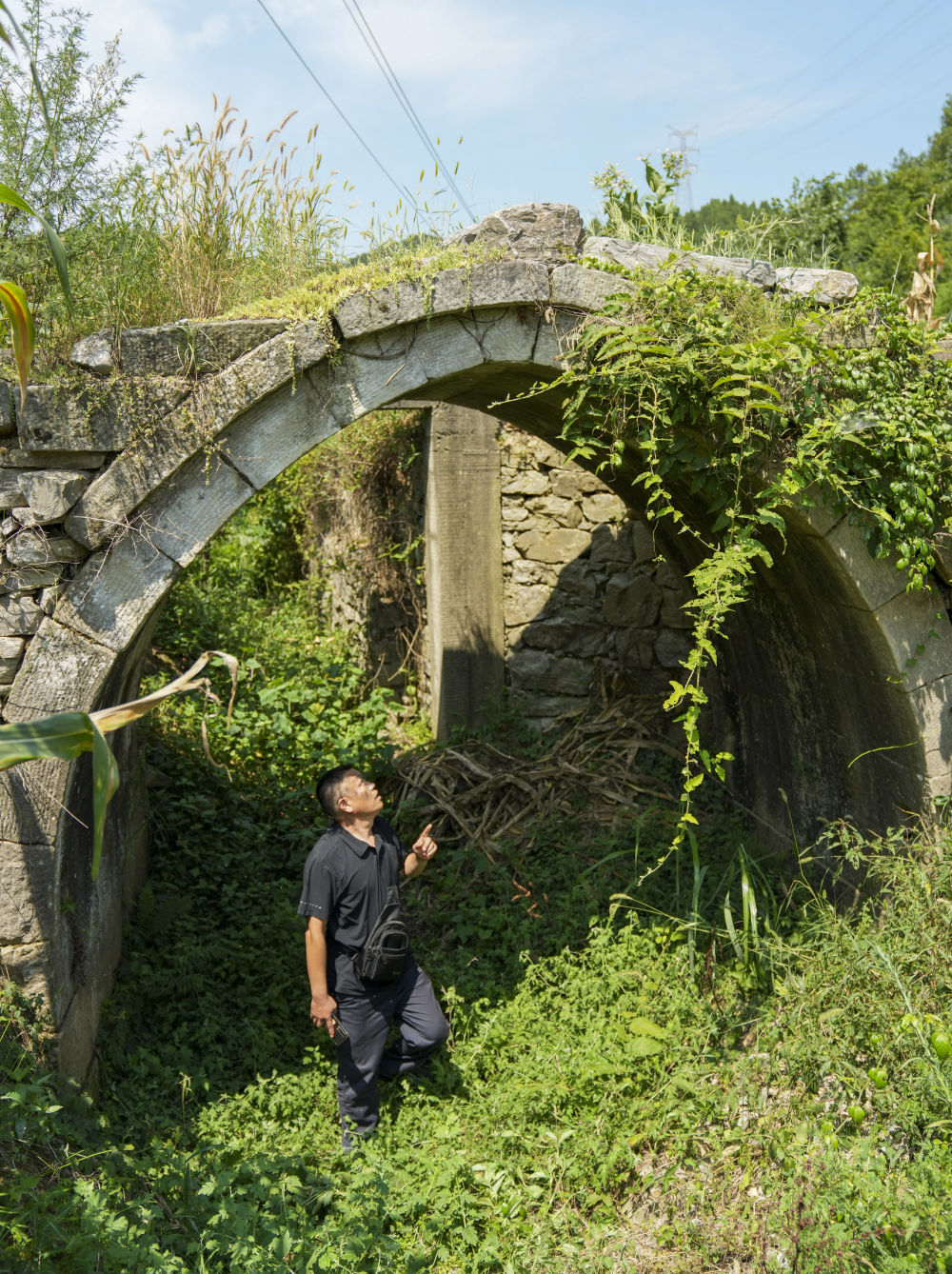7月30日,重庆市涪陵区百胜镇工作人员周宗云对古道上的一座桥梁进行巡查。