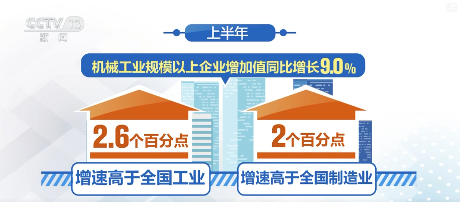 此外,上半年,机械工业规模以上企业增加值同比增长9.0%,增速高于全国工业和制造业2.6和2个百分点,为稳定经济大盘、提振工业经济发挥积极作用。