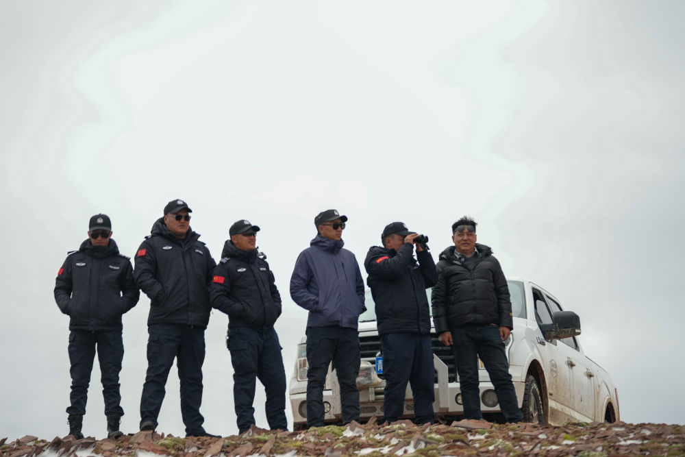 巡山队员在可可西里卓乃湖附近巡护。新华社记者 杜笑微 摄