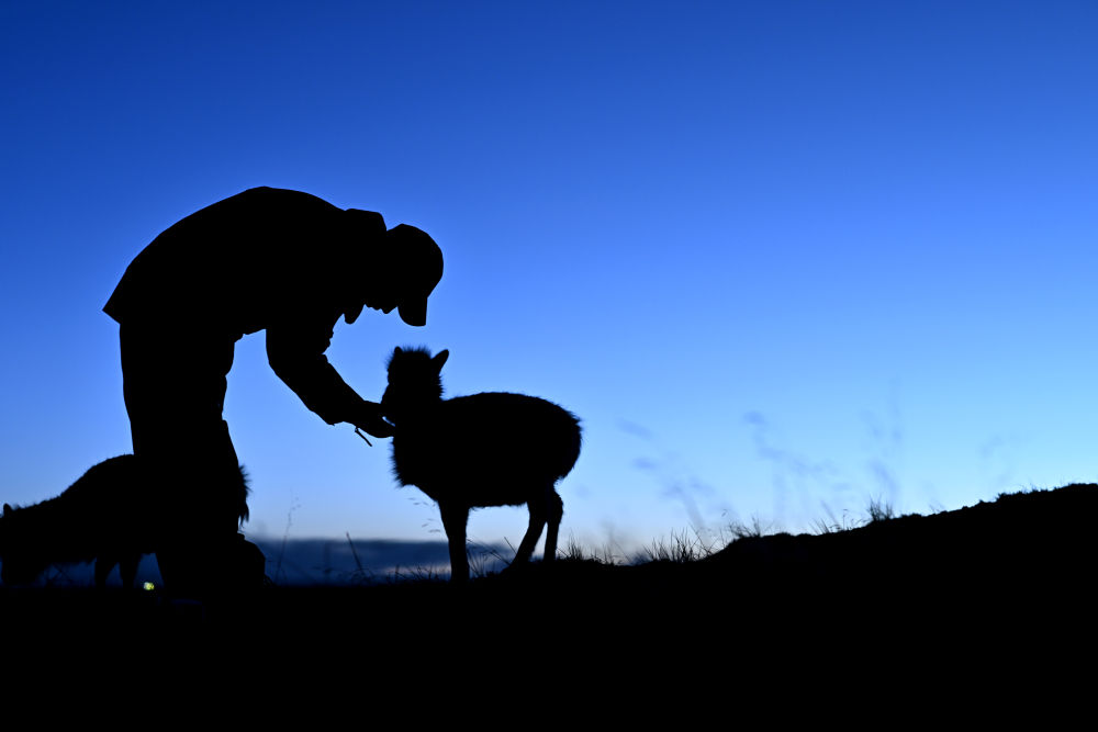可可西里管理处索南达杰保护站,巡山队员与被救助的藏羚羊幼仔在一起。新华社记者 张宏祥 摄