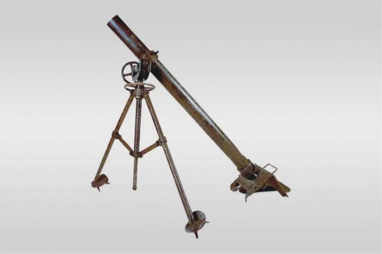 击毙阿部规秀所用的迫击炮,口径75毫米,炮管长度135厘米。中国人民革命军事博物馆