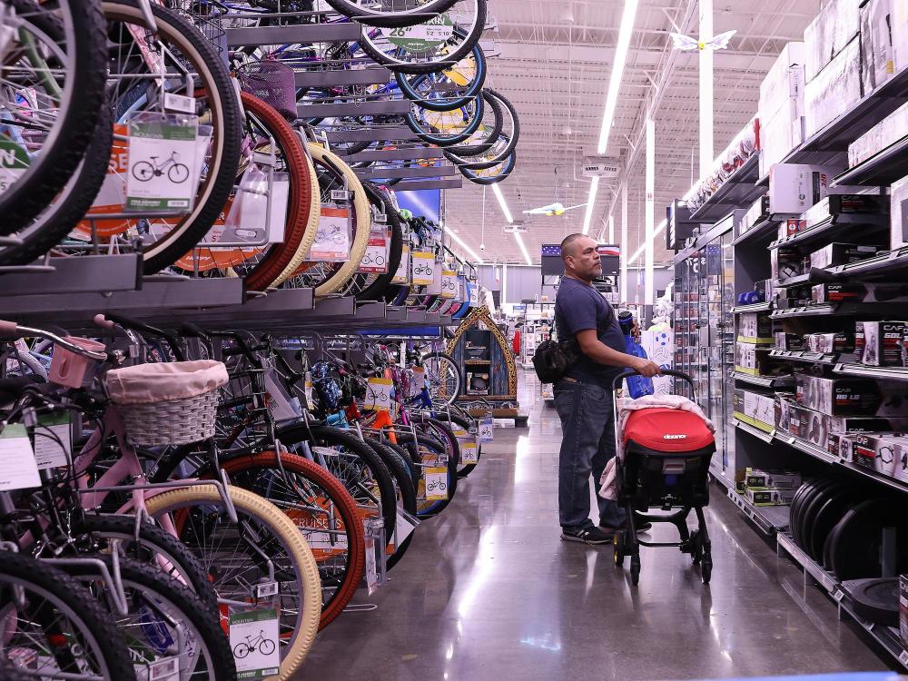 5月20日,顾客在美国加利福尼亚州洛杉矶县一家沃尔玛商店内采购商品。新华社发(邱晨摄)