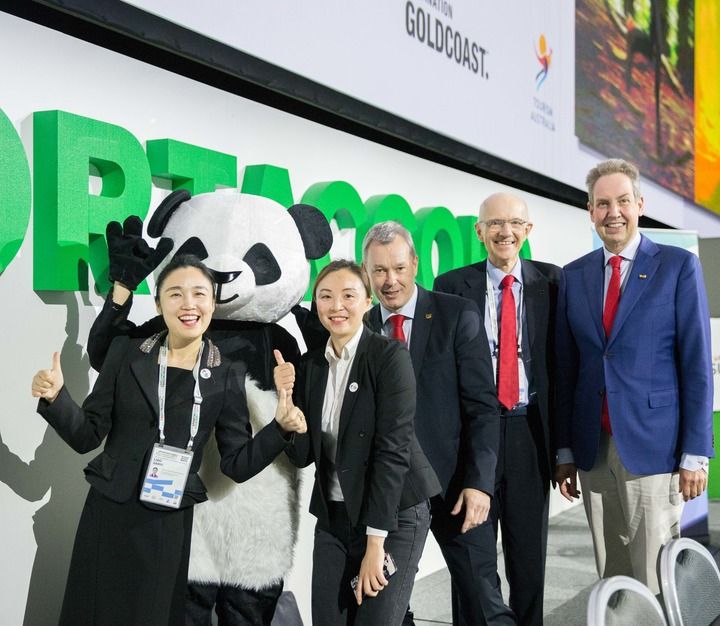 2019年5月9日,在澳大利亚黄金海岸举行的国际世界运动会协会2019年全会上,成都获得2025年世界运动会举办权。这是与会代表合影留念。新华社发(胡泾辰 摄)