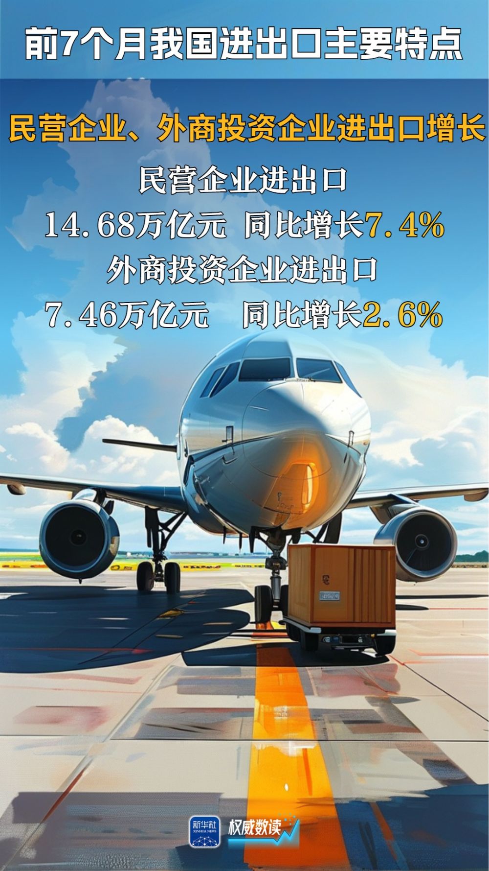 海关总署7日发布数据显示,今年前7个月,我国货物贸易进出口总值25.7万亿元人民币,同比增长3.5%。面对复杂外部环境,我国外贸运行保持向上向好势头,经济运行稳中有进。