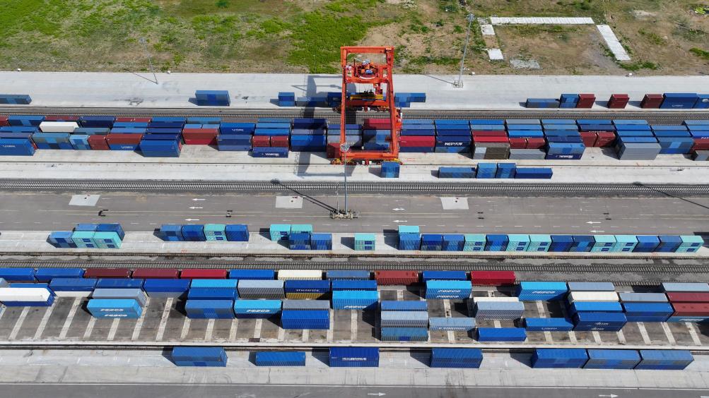 口岸站整齐摆放的集装箱。(中国铁路哈尔滨局集团有限公司供图)
