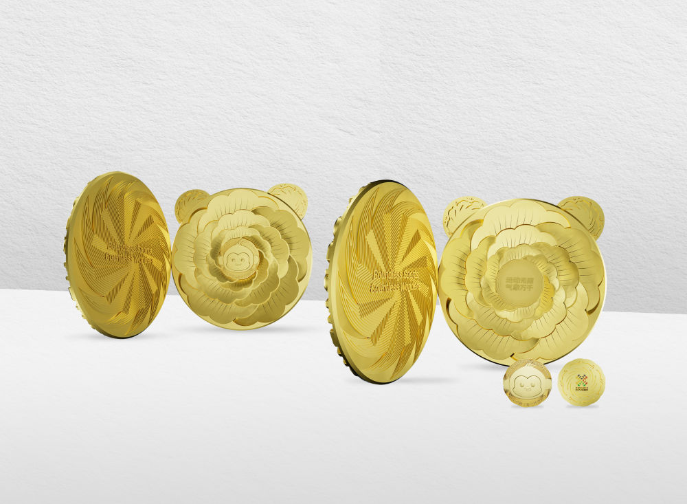 这枚“竹光”最引人注目的突破在于内部结构的设计——向左翻开奖牌正面,有一枚独特的金属徽章,徽章一面是灵动的川金丝猴“锦仔”,另一面是太阳神鸟环绕成都世运会标识。这一巧思生动诠释了“分享”的理念,获奖者可以将徽章取下,赠予家人或朋友,让荣誉与喜悦传递延续。