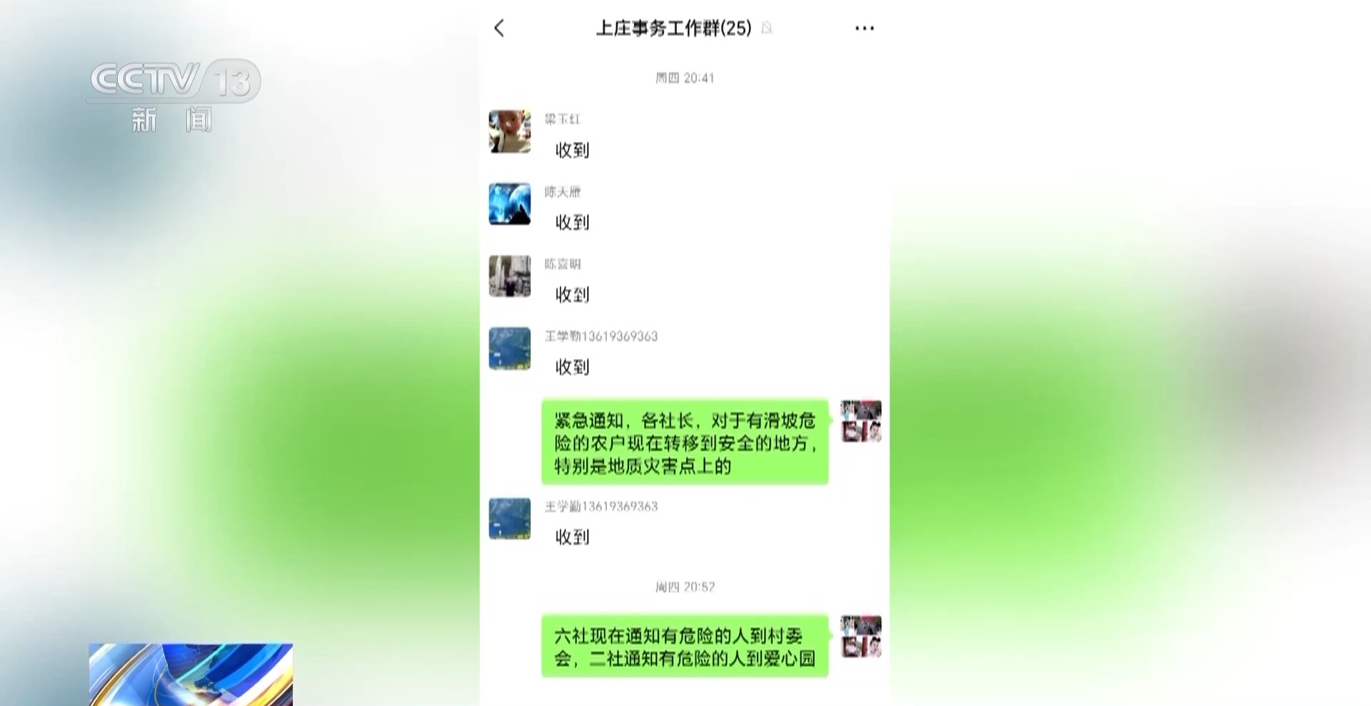 陈万凯立刻在村里的微信群里发出转移避险信息,要求村干部们分头带领居住在地质灾害隐患点和河道边的村民,立即转移到半山腰的村民广场上。考虑到一社和二社还有一些行动不便的老人,他又冒着大雨带领值班的村干部赶到了山脚下。