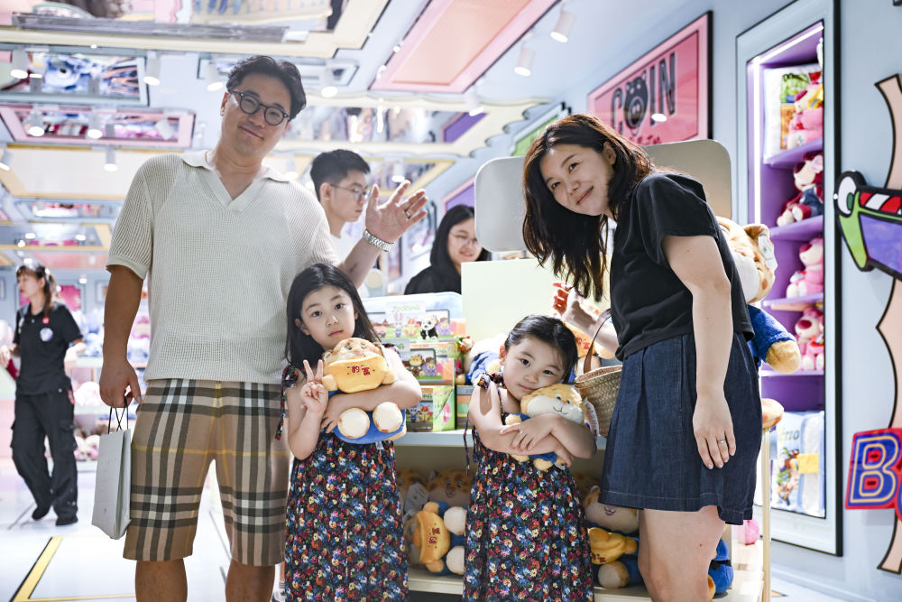 7月17日,韩国游客在位于上海市南京路步行街的一家潮玩店里购物。新华社记者 唐斯琦 摄