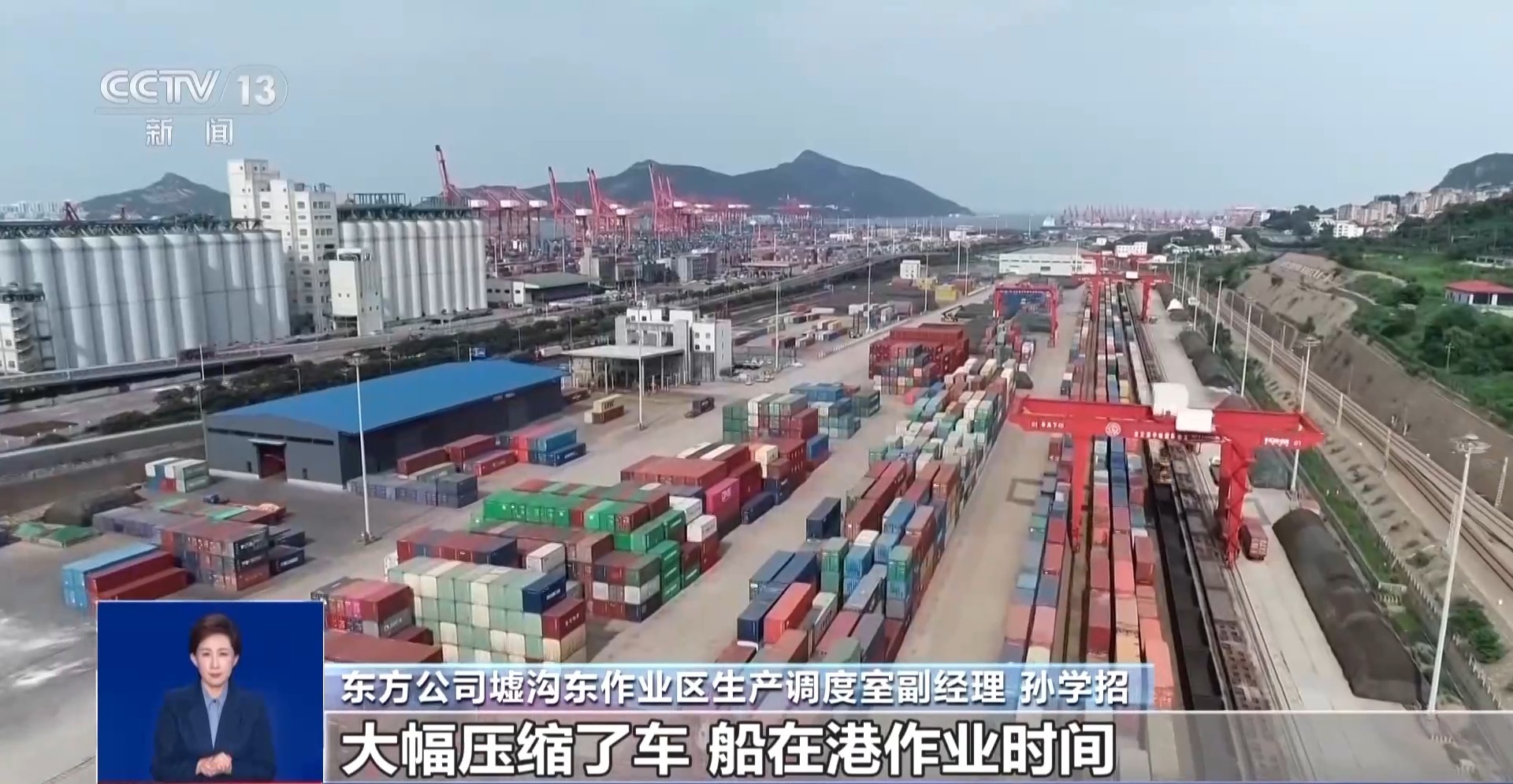 东方公司墟沟东作业区生产调度室副经理 孙学招:大宗货物到港后,我们通过“车船直取”模式,通过“陆海联运”将货物集散分拨,大幅压缩了车、船在港作业时间。