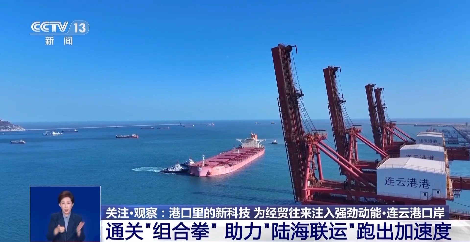 目前,凭借“陆海联运”通道优势,连云港港已织就一张覆盖99条集装箱航线、25条海铁联运通道、14条海河联运通道及6条国际班列的立体物流网络。