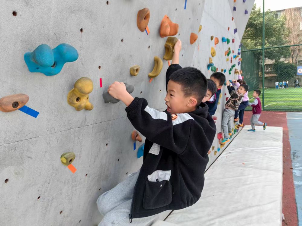 在成华区嘉祥外国语学校的户外攀岩场