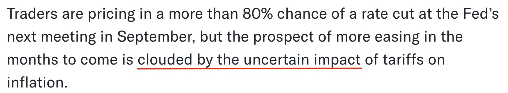 △彭博社援引业内人士的观点预测,即使9月降息,美联储在未来几个月进一步降息的前景也将因关税对通胀的不确定影响而蒙上阴影。