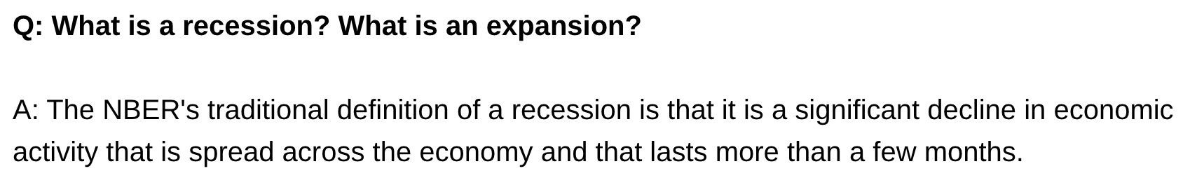 按照美国全国经济研究所(NBER)的定义,经济衰退指“经济活动显著下降,波及整个经济体,且持续数月以上”。纳入考察的指标包括个人收入、就业、消费者支出、销售和工业生产数据等。而就业数据是其中最重要的单一数据。