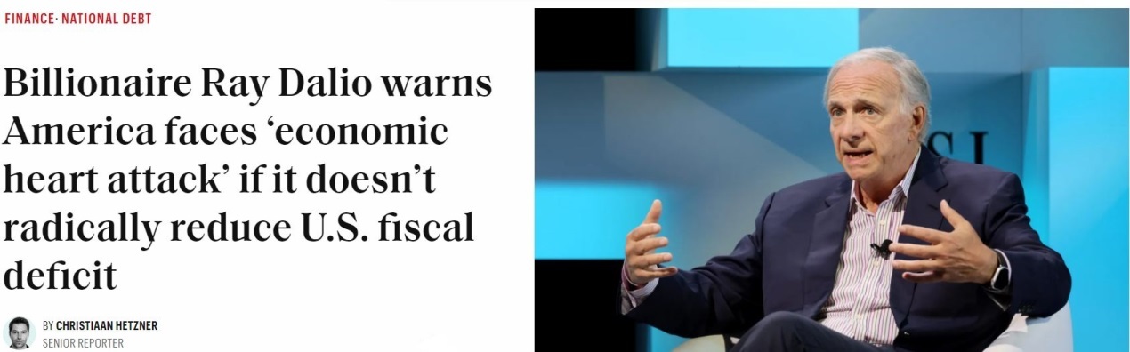 美国桥水基金创始人达利欧此前更是警告,如果不能有效控制财政赤字和债务规模,美国经济迟早会“心脏病发作”。