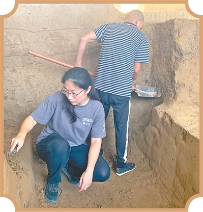 王晶(左)在琉璃河遗址城北发掘区工作。