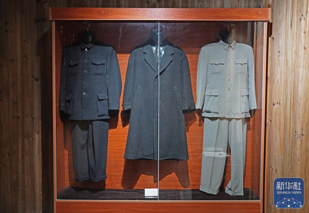 2025年8月1日在梅汝璈故居拍摄的梅汝璈在东京审判时期穿过的衣服。