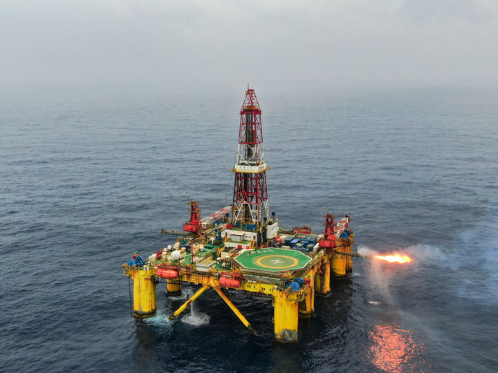 “南海二号”钻井平台在惠州19-6油田海域进行钻探作业。2025年3月31日,中国海油发布消息,我国在南海东部海域勘探发现惠州19-6亿吨级油田。新华社发(中国海油供图)