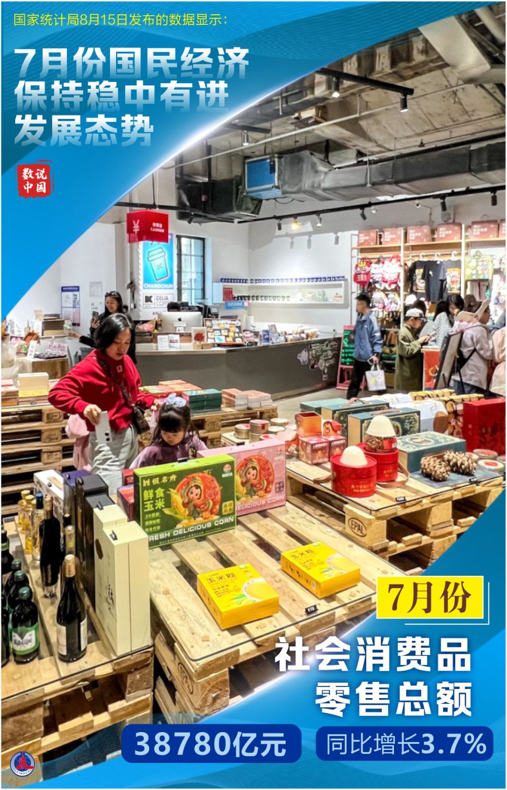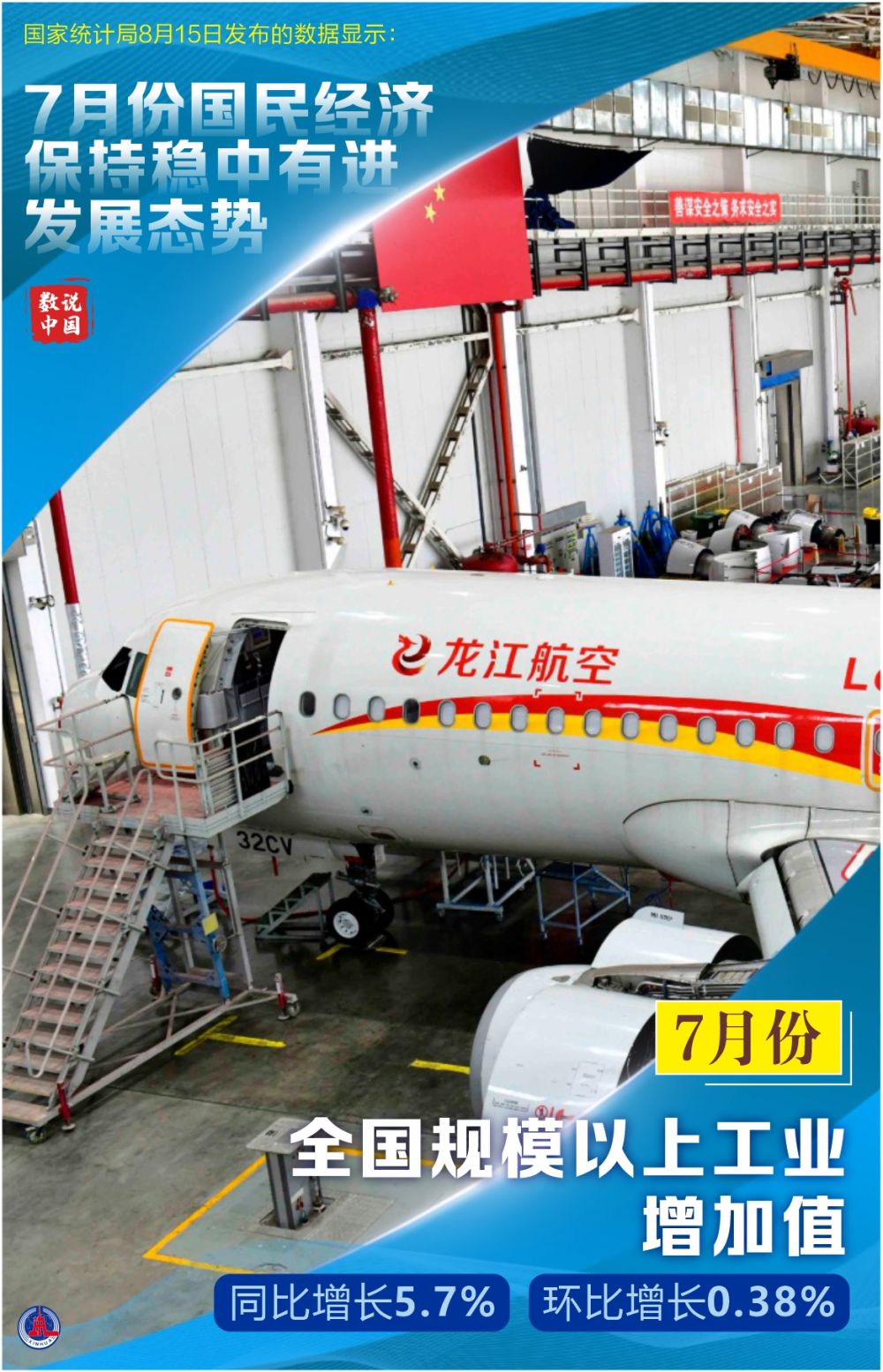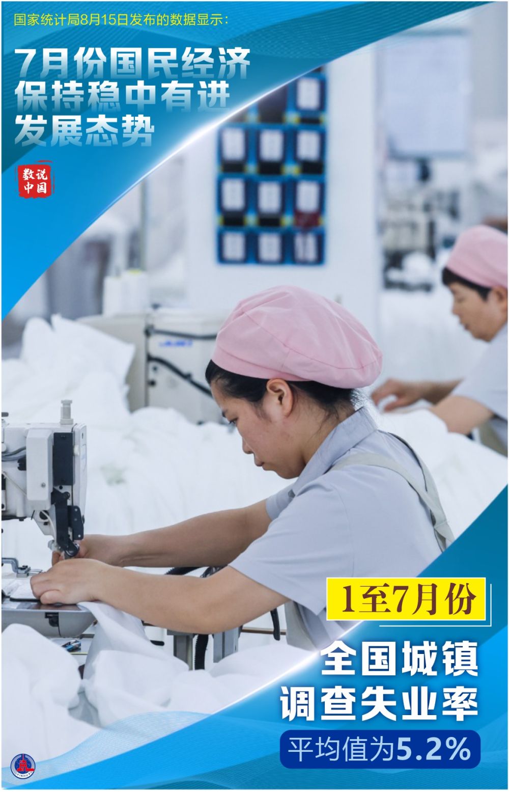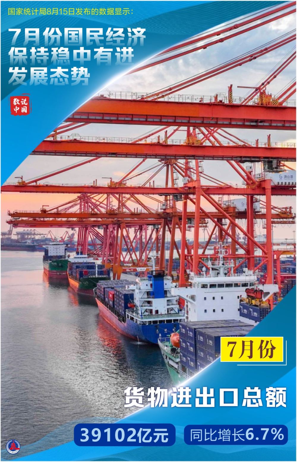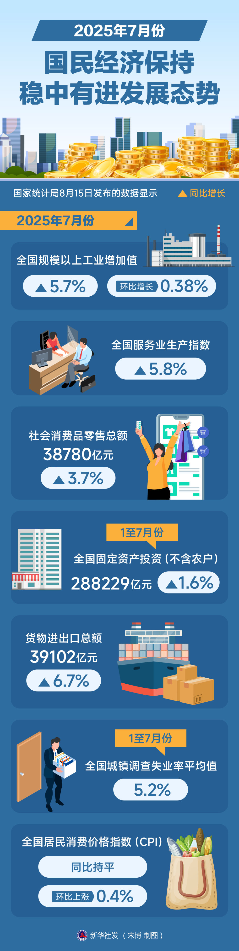 国家统计局8月15日发布的数据显示,2025年7月份,国民经济保持稳中有进发展态势,生产需求持续增长,就业物价总体稳定,新质生产力培育壮大,高质量发展取得新成效。
