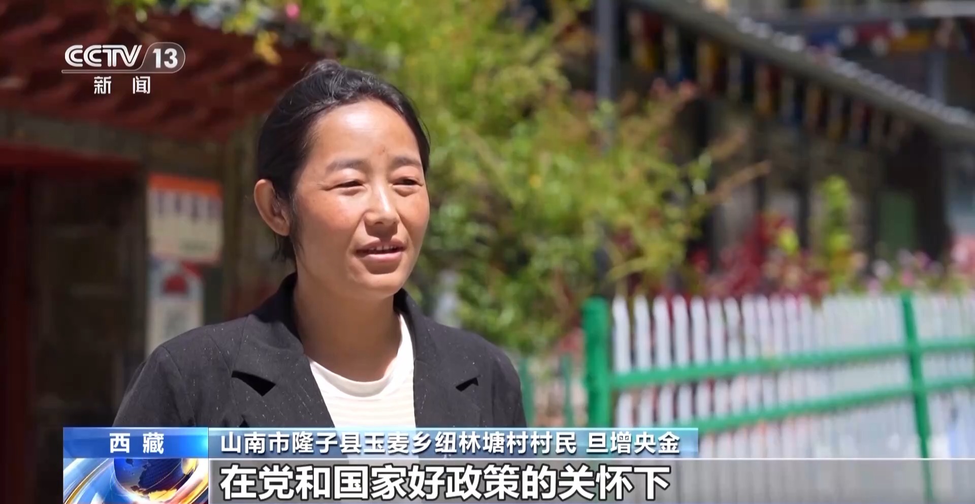 山南市隆子县玉麦乡纽林塘村村民 旦增央金:在党和国家的好政策关怀下,我们这里水电网、日常所需样样不愁,最近村里还给每家每户门口修了小花坛,居住环境越来越好了。