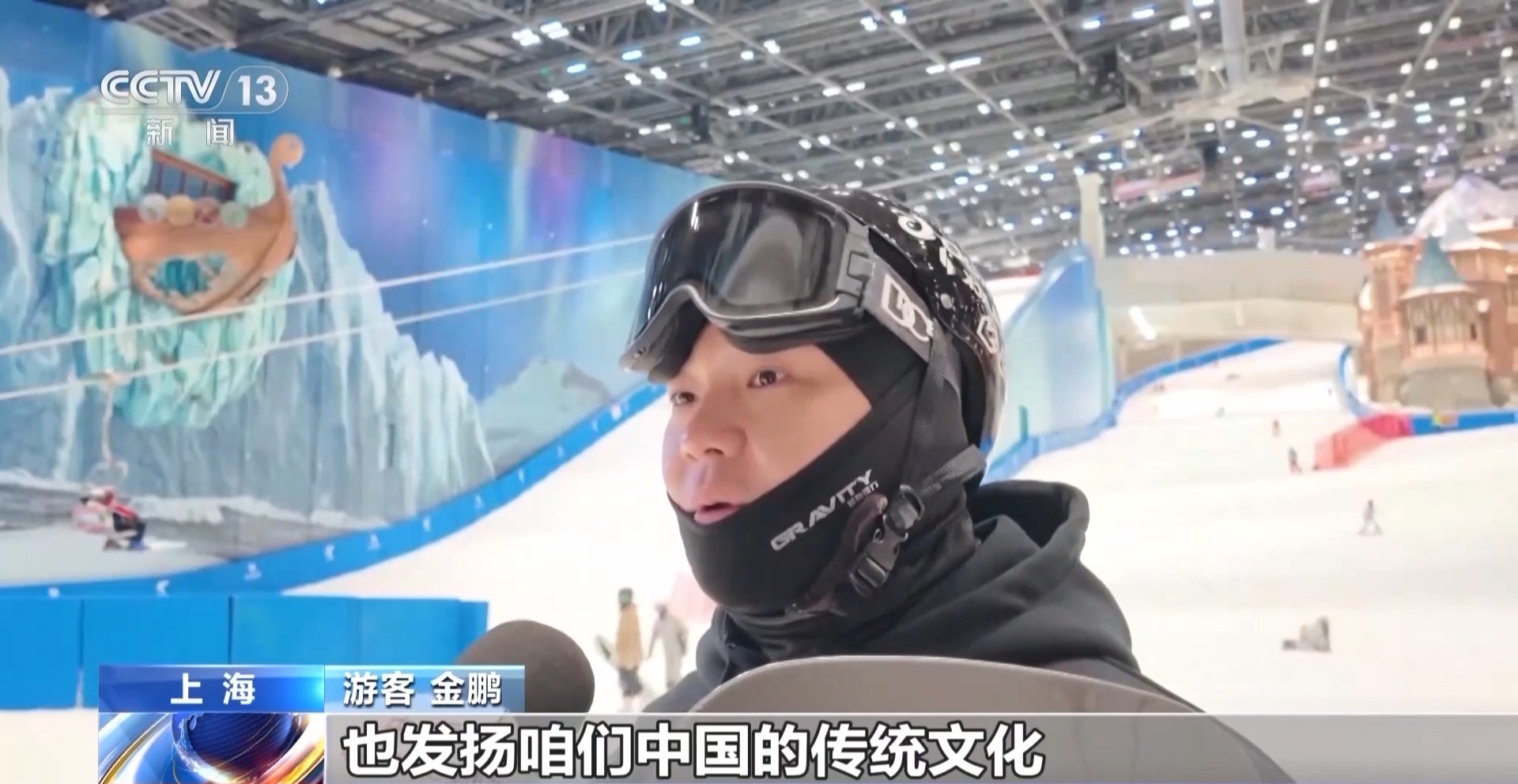 游客 金鹏:一进到雪场就身心愉悦,表演把滑雪和中国京剧文化融合在一起,也发扬咱们中国的传统文化。
