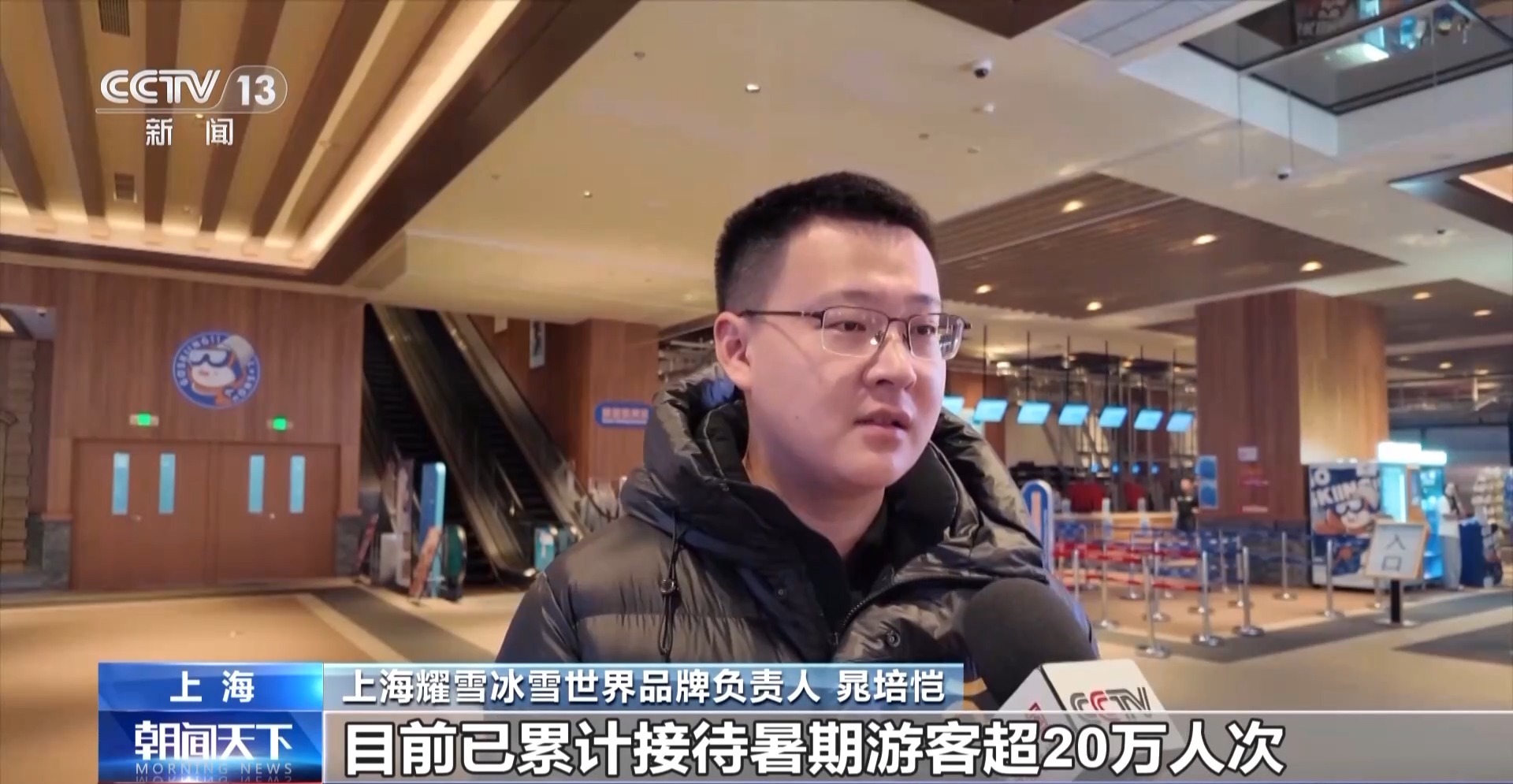 上海耀雪冰雪世界品牌负责人 晁培恺:目前已累计接待暑期游客超20万人次,同时我们配套的三大酒店在周末的时候入住率达到90%以上,我们园内的餐饮零售等也是有20%的增长。