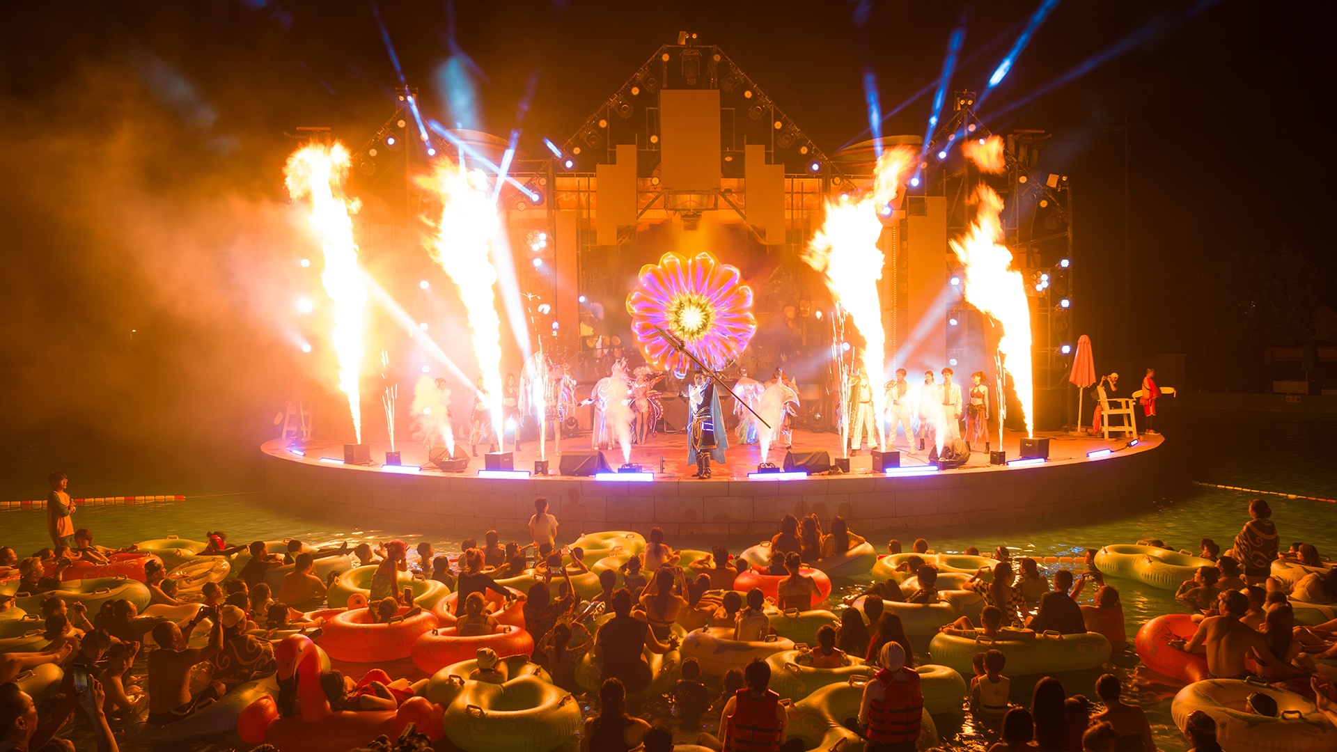 游客在泳池里观看演出(央广网发 受访者供图)