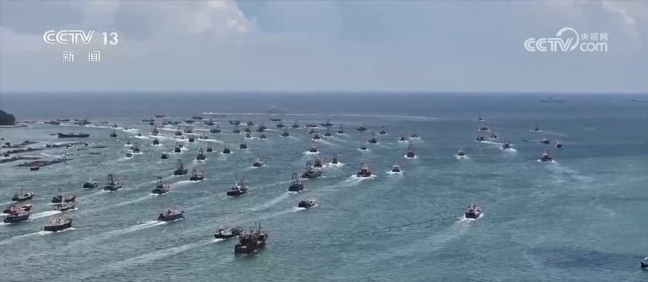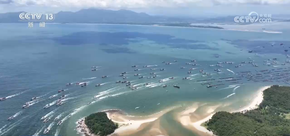 在广东阳江,中午12时,随着开渔令发布,3400多艘渔船开足马力、破浪出征,有序驶向南海渔场。