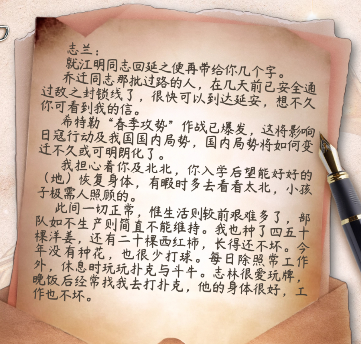 5月22日,日军离八路军总部只有十几公里了,在这样一个危急时刻,得知有人要去延安,左权决定给妻子刘志兰写一封信,回答她的问题。