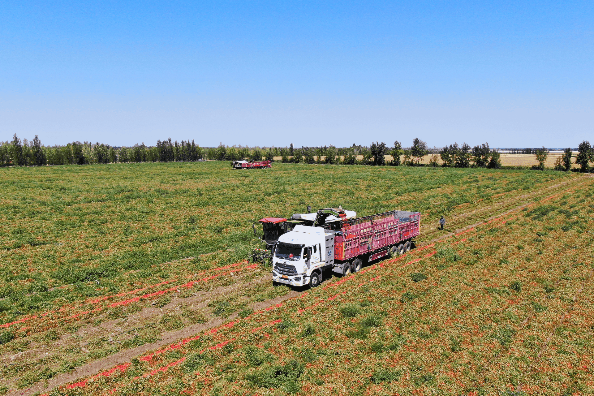 “三台镇今年种植番茄1200余亩,从8月初开始陆续采收,预计9月初采收结束。在采收期间,我们积极协调采收机械及人工,确保工业番茄顺利采收。”吉木萨尔县三台镇副镇长乔昌旭说。