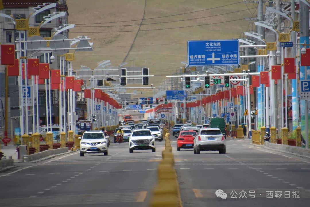 图为昌都市昌都西路浓厚的大庆氛围。记者 平措郎加 贡秋曲措 摄