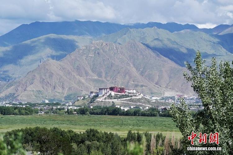 从西藏拉萨拉鲁湿地远眺布达拉宫和南山。中新社记者 张祥毅 摄