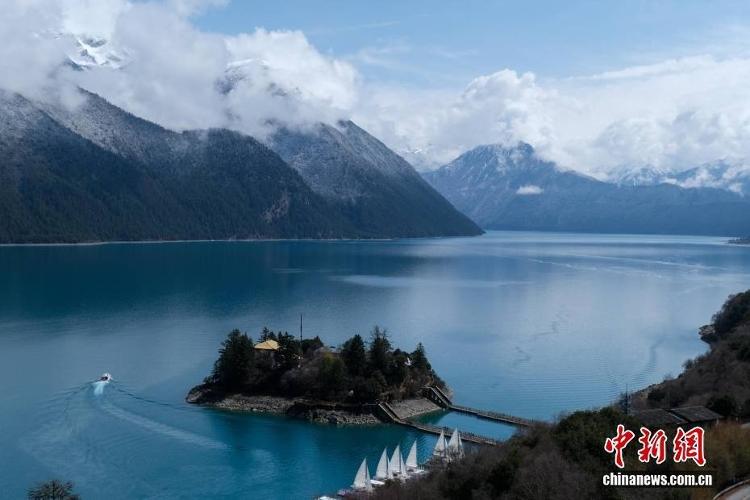 位于西藏林芝的巴松错迎来一场春雪,雪后风光如画。图为巴松错与远处的雪山风光。中新社记者 江飞波 摄