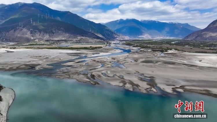 西藏自治区林芝市尼洋河与雅鲁藏布江交汇处美景如画。(无人机照片)中新社记者 马铭言 摄