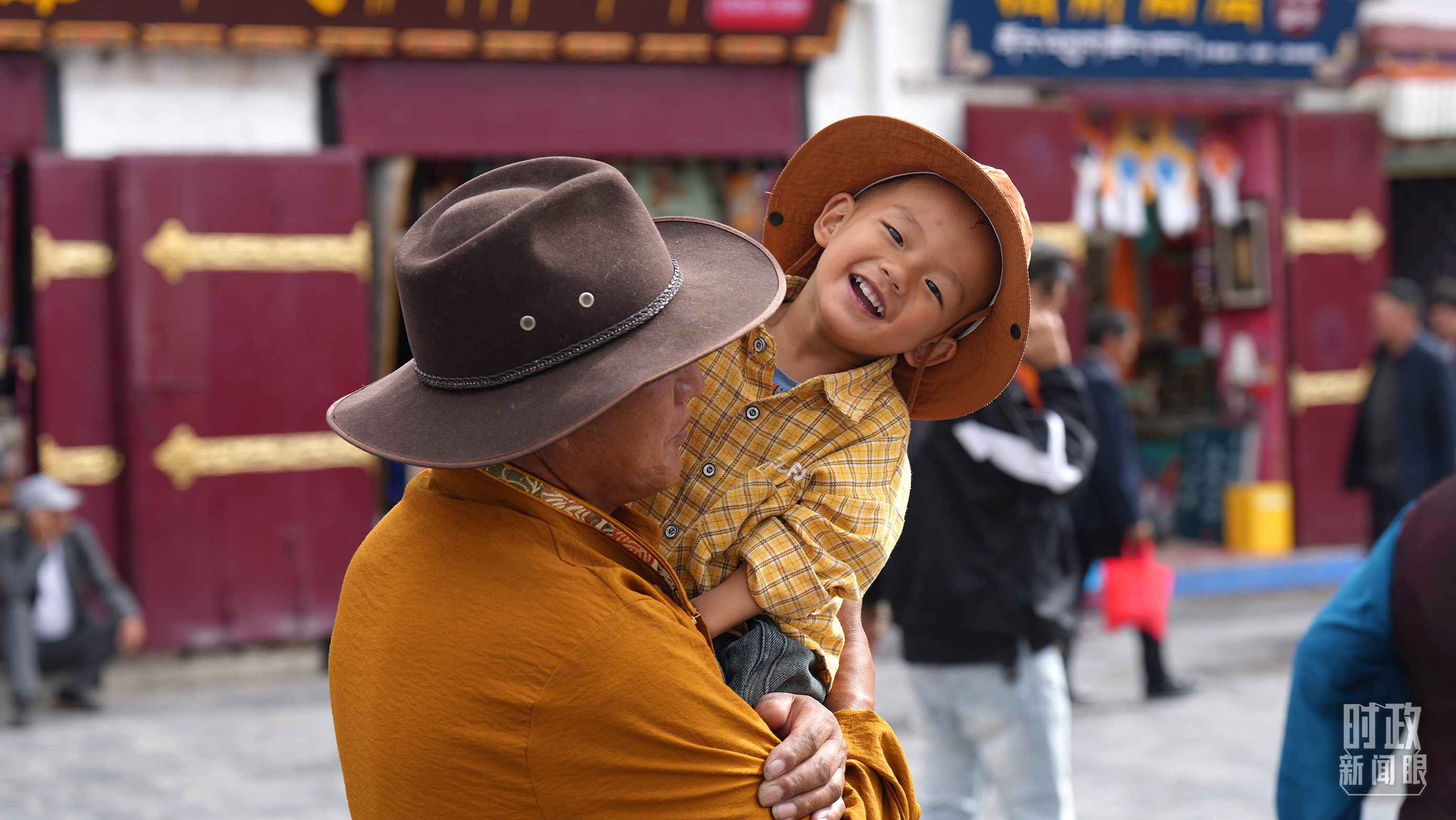 △拉萨八廓街上的温馨一幕。(总台记者李晋拍摄)