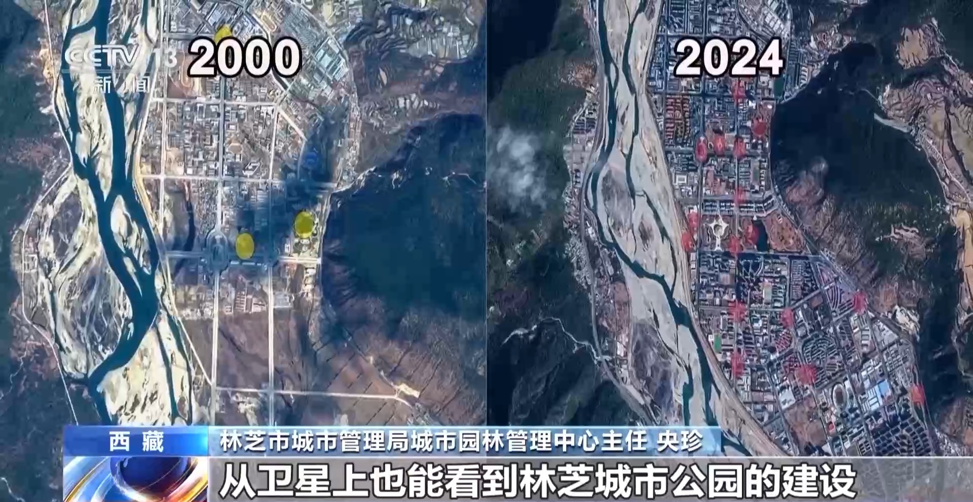 林芝市城市管理局城市园林管理中心主任 央珍:我现在所在的工布公园,占地面积68万平方米,由城市公园、生态公园、儿童公园、工布天街四个功能区组成,是一个功能比较齐全的综合类公园。