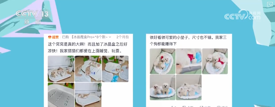 高温还催热了“它经济”。在网购平台上搜索关键词“宠物降温”,宠物空调房、冰垫、冰丝围巾、宠物专用空调等商品琳琅满目。一件30块钱左右的基础款宠物冰垫,月销量轻松破万。可调节风速的宠物风扇、能自动制冷的宠物窝等,同样备受追捧。评论区的画风是这样的“狗狗非常喜欢,玩得不亦乐乎”“猫咪睡觉终于踏实了”“家里的娃和毛孩子都很喜欢”。