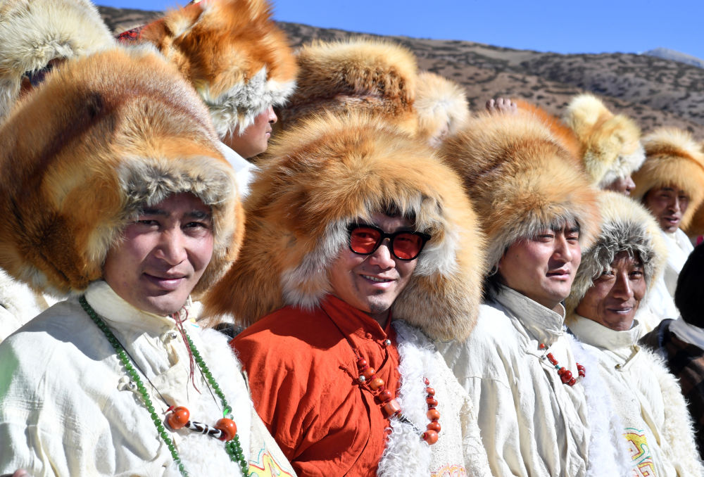 这是在藏北当雄县公塘乡拍摄的盛装汉子。(2021年2月12日摄) 新华社记者 觉果 摄
