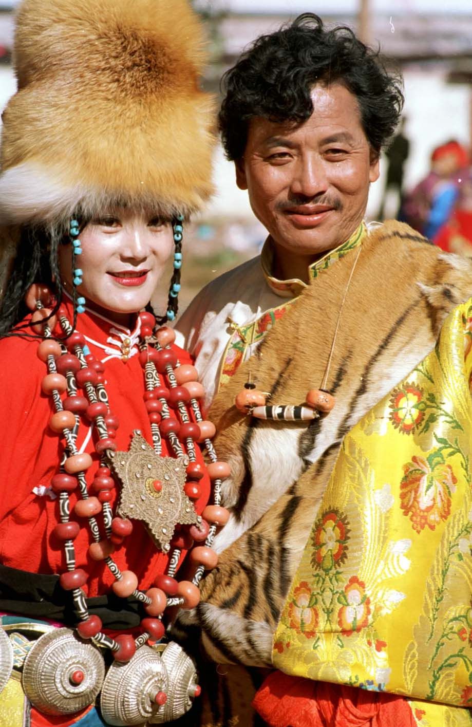 藏东青年身穿新式藏服合影。(2002年4月12日发)新华社记者 觉果 摄