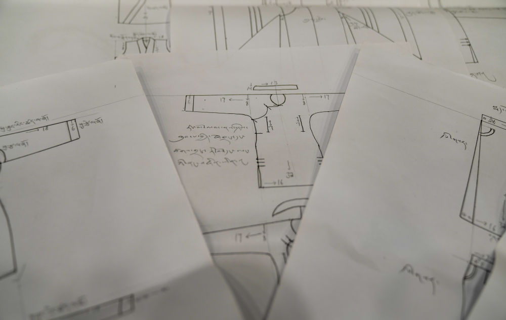 这是洛桑麦朗手绘的藏装制作要领(8月15日摄)。新华社记者 晋美多吉 摄