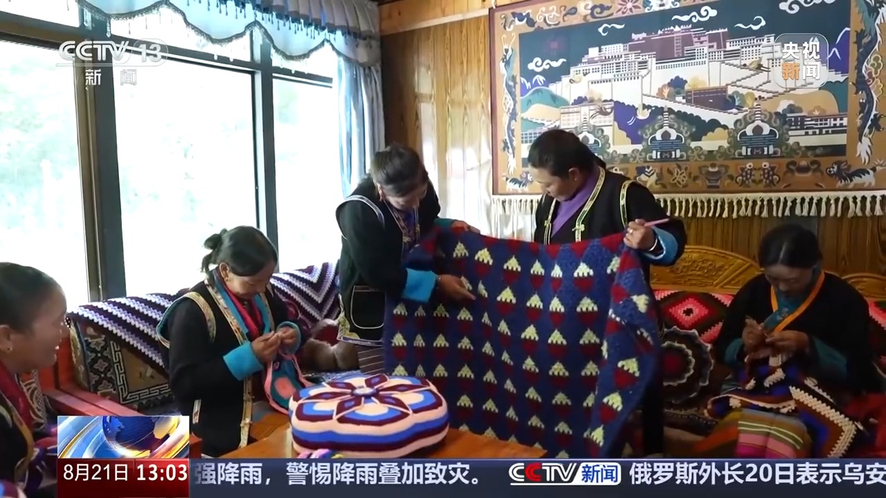 西藏自治区山南市隆子县珞瓦新村村民 次仁卓玛:今年以来,我们已经卖出了50多条毛毯,100多个靠枕,其中一半是通过网络直播卖出的。