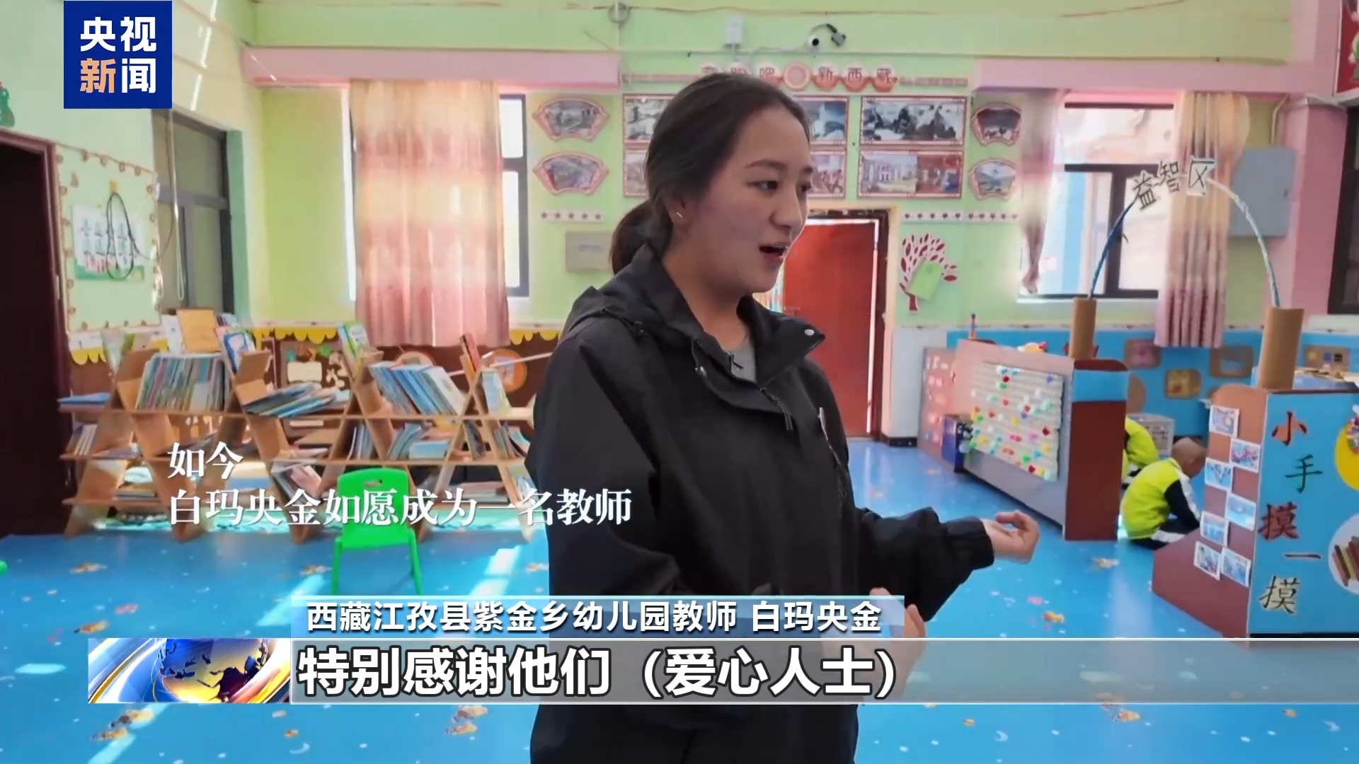 西藏江孜县紫金乡幼儿园教师 白玛央金:特别感谢爱心人士,希望他们能看到我现在的样子。我也会在自己的工作岗位上,做得越来越好,不负大家的期望。