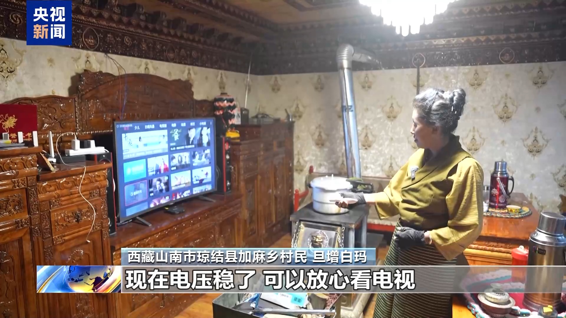 西藏山南琼结县加麻乡村民 旦增白玛:现在电压稳了,可以放心看电视。而且还买了很多新家电,冰箱、洗衣机。