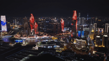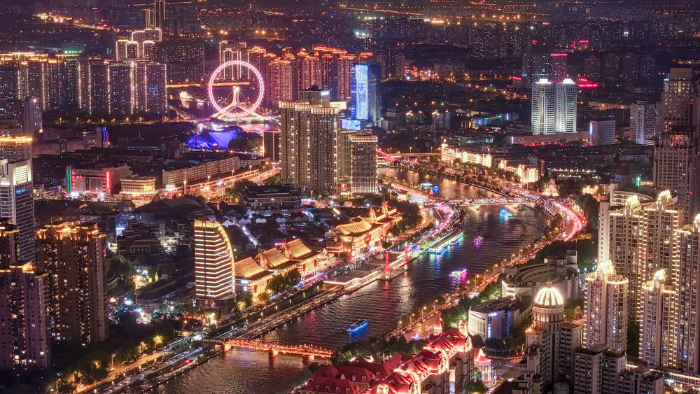 7月19日拍摄的天津海河夜景(无人机照片)。新华社记者 孙凡越 摄
