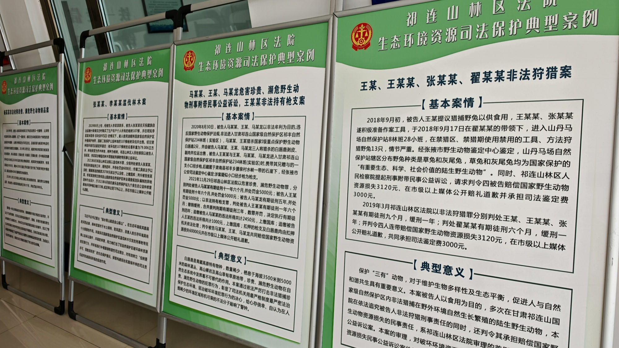 巡回审判庭的“法庭”从不在屋里。有时在油菜花田边支起桌案,法槌一落,“王某前森林草原失火案”的庭审就成了最鲜活的普法课——这案子入选最高人民法院青藏高原生态保护典型案例,法官蹲在牧人身边,指着草原防火设备说“咋用”,掰着指头算“失火要担啥责”,牧民们握着赶牧鞭听得入神,连羊群都静悄悄地伏在远处。办案点的展板上,非法采矿、危害珍贵野生动物等10个典型案例图文并置,像10面透亮的镜子,照得生态保护的法律红线清清楚楚。