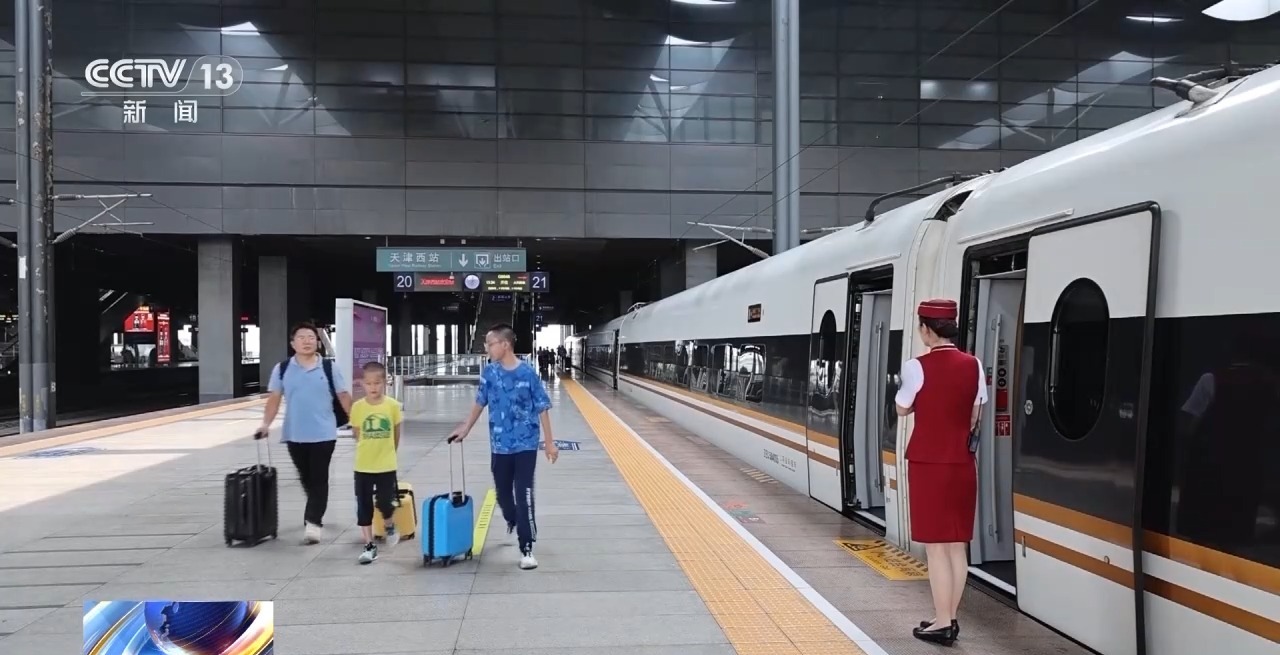 天津站天津西客运车间业务指导 唐旭鑫:目前我们天津西站开往大兴机场方向的高铁列车日常可以达到20对,高峰图的时候可以达到24对。客流还是相对饱满的,大部分客流也是到大兴机场去坐飞机。