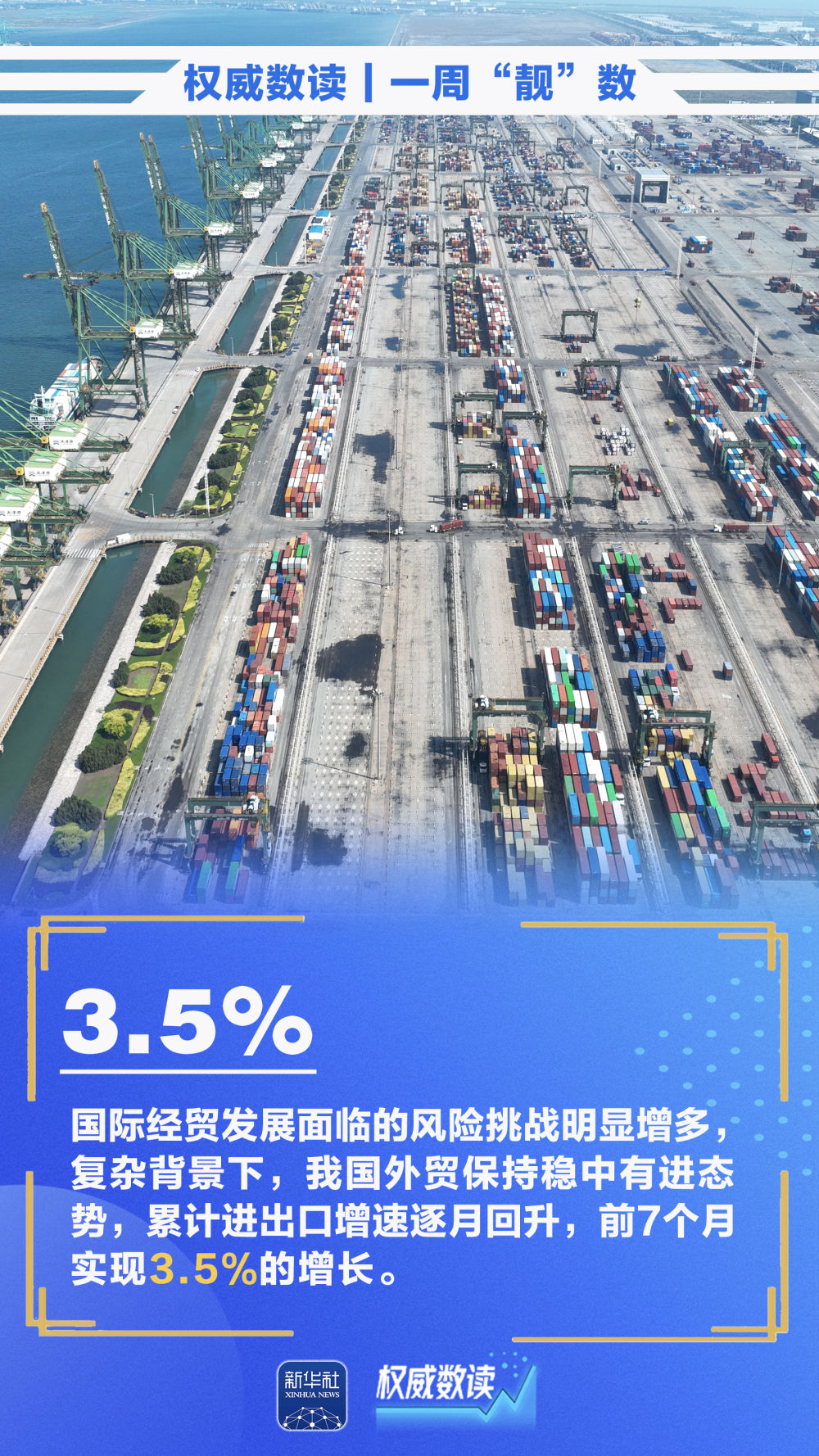 即将到来的九三阅兵活动按照阅兵式、分列式两个步骤进行,时长约70分钟;我国外贸保持稳中有进态势,累计进出口增速逐月回升,前7个月实现3.5%的增长;今年前7个月,我国对上海合作组织其他成员国进出口2.11万亿元,规模创历史同期新高……本周这些数据,最值得关注!